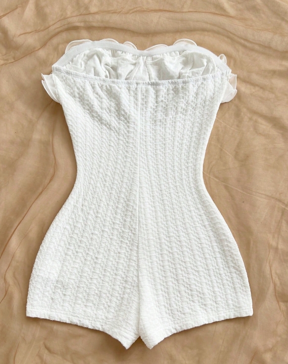 Impresionante. Audaz. Seductor. Este mono strapless con volantes arquitectónicos es el look que dejará a todos sin palabras. Perfecto para bodas, galas o la noche más especial del año. Combina sofisticación con un toque bohemio para que destaques con un estilo único. ¡Sé la reina de la fiesta!