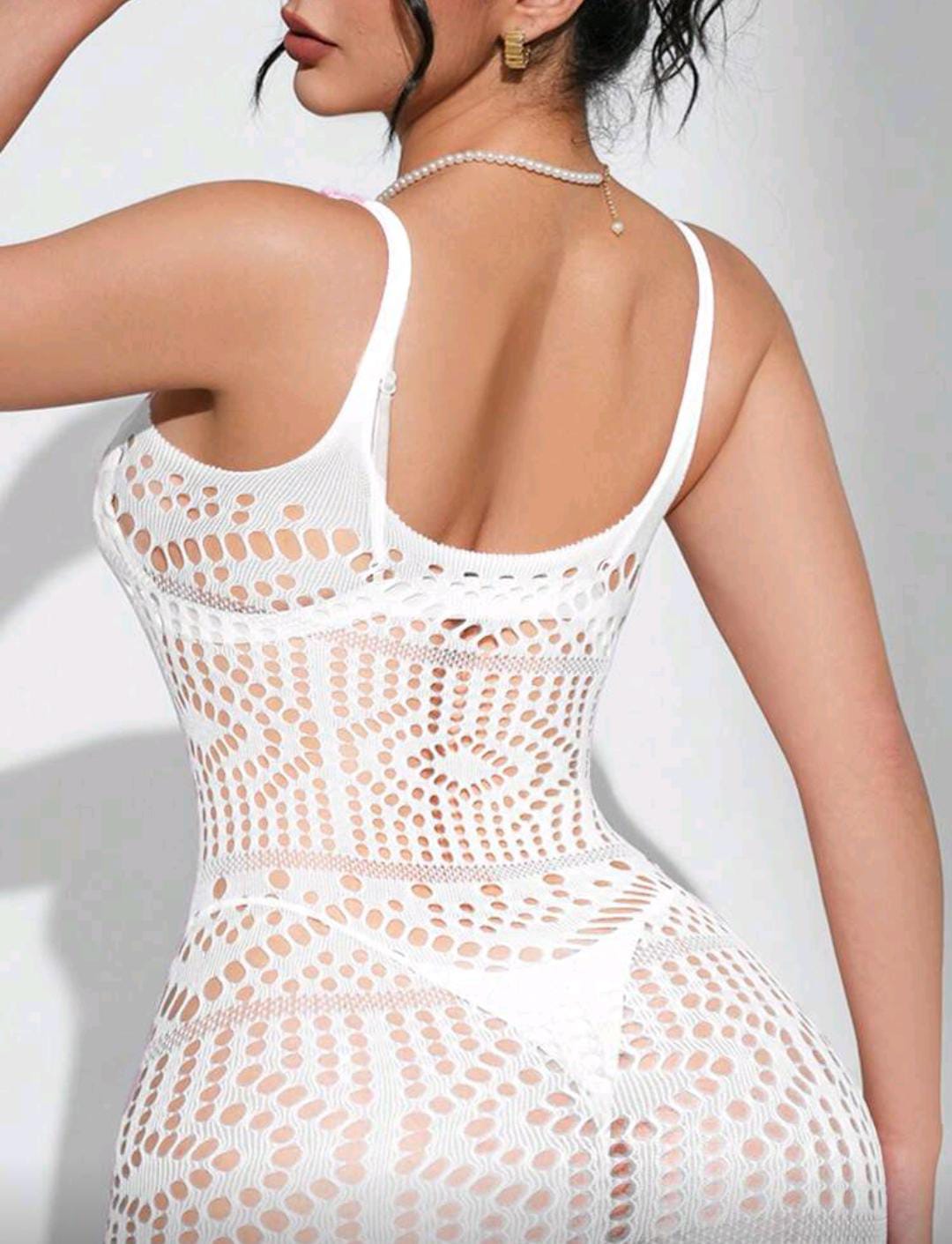 ¡Oportunidad Única! Deslumbra en esa escapada a la playa o fiesta nocturna con este vestido halter de malla transparente. Elegancia pura, espalda descubierta y una transparencia que sugiere sin mostrar de más. La combinación perfecta de sofisticación, atrevimiento y precio increíble. ¡Es tu momento!